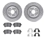 DFC Rotors-Drilled & Slotted-Silver w/ 5000 Advanced Brake Pads Incl Hdw