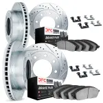 DFC Rotors-Drilled & Slotted-Silver w/ 5000 Advanced Brake Pads Incl Hdw
