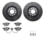 DFC Rotors-Drilled & Slotted-Black w/ 5000 Advanced Brake Pads Incl Hdw