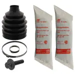 - Description: This kit includes the CV boot, grease, bands, and sometimes clamps or clips—offering a complete solution for servicing a single CV joint. The Febi CV joint boot kit—part number 43449—features a high-flex boot molded to OE fit, high-moly grease for extreme pressure protection, and fastening hardware built for durability. Engineered for vehicles with front- or rear-wheel drive CV axles, this kit restores factory-level protection and performance. Ideal for vehicles showing signs of CV boot cracking, grease sling, or noise, it prevents further joint wear and expensive axle replacements.