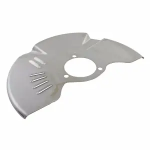 A shield used to contain the brake dust produced by the brake pads of a vehicle's disc brake calipers. Additionally, it functions as a splash guard to protect a vehicle's disc brake rotors from water, dirt and debris.