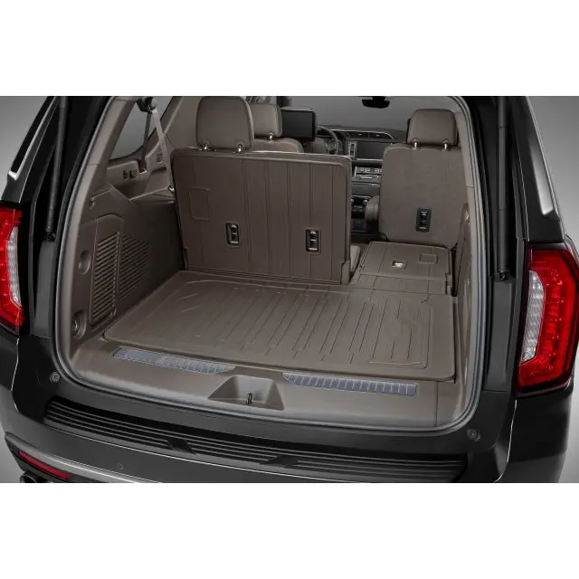 The GMC Accessories Integrated Cargo Liner covers the cargo area floor and the back of the rear seats to help provide protection from scratches and stains when carrying items of various sizes. Sometimes called custom floor mats or weather mats, this cargo liner covers previous wear and helps protect against future wear caused by everyday use. It articulates with the rear seatbacks, conveniently allowing for use with seatbacks in the up or down position.
