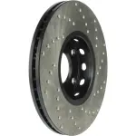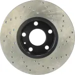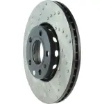 - Description: StopTech Drilled Sport Rotors are 1-piece direct replacement brake discs for factory brake systems and stock calipers that look great behind your wheels – and offer significantly improved braking performance. The unique cross-drilling aids with heat and brake dust dispersal; prevents glazing of the pads; adds bite and improves wet and dry braking performance. Built to last; the black e-coating provides protection from corrosion and the high carbon metallurgy (in most applications) offers quieter operation; better crack resistance and increased performance.