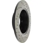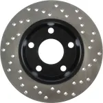 - Description: StopTech Drilled Sport Rotors are 1-piece direct replacement brake discs for factory brake systems and stock calipers that look great behind your wheels – and offer significantly improved braking performance. The unique cross-drilling aids with heat and brake dust dispersal; prevents glazing of the pads; adds bite and improves wet and dry braking performance. Built to last; the black e-coating provides protection from corrosion and the high carbon metallurgy (in most applications) offers quieter operation; better crack resistance and increased performance.
