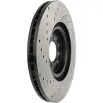- Description: StopTech Drilled and Slotted Sport Rotors are 1-piece direct replacement brake discs for factory brake systems and stock calipers that look great behind your wheels – and offer significantly improved braking performance. The unique cross-drilling and slotting aids with heat and brake dust dispersal; prevents glazing of the pads; adds bite and improves wet and dry braking performance. Built to last; the black e-coating provides protection from corrosion and the high carbon metallurgy (in most applications) offers quieter operation; better crack resistance and increased performance.