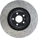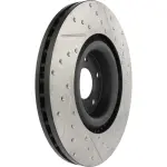 - Description: StopTech Drilled and Slotted Sport Rotors are 1-piece direct replacement brake discs for factory brake systems and stock calipers that look great behind your wheels – and offer significantly improved braking performance. The unique cross-drilling and slotting aids with heat and brake dust dispersal; prevents glazing of the pads; adds bite and improves wet and dry braking performance. Built to last; the black e-coating provides protection from corrosion and the high carbon metallurgy (in most applications) offers quieter operation; better crack resistance and increased performance.
