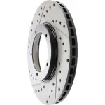 - Description: StopTech Drilled and Slotted Sport Rotors are 1-piece direct replacement brake discs for factory brake systems and stock calipers that look great behind your wheels – and offer significantly improved braking performance. The unique cross-drilling and slotting aids with heat and brake dust dispersal; prevents glazing of the pads; adds bite and improves wet and dry braking performance. Built to last; the black e-coating provides protection from corrosion and the high carbon metallurgy (in most applications) offers quieter operation; better crack resistance and increased performance.