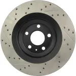 - Description: StopTech Drilled and Slotted Sport Rotors are 1-piece direct replacement brake discs for factory brake systems and stock calipers that look great behind your wheels – and offer significantly improved braking performance. The unique cross-drilling and slotting aids with heat and brake dust dispersal; prevents glazing of the pads; adds bite and improves wet and dry braking performance. Built to last; the black e-coating provides protection from corrosion and the high carbon metallurgy (in most applications) offers quieter operation; better crack resistance and increased performance.