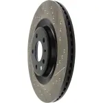 - Description: StopTech Drilled and Slotted Sport Rotors are 1-piece direct replacement brake discs for factory brake systems and stock calipers that look great behind your wheels – and offer significantly improved braking performance. The unique cross-drilling and slotting aids with heat and brake dust dispersal; prevents glazing of the pads; adds bite and improves wet and dry braking performance. Built to last; the black e-coating provides protection from corrosion and the high carbon metallurgy (in most applications) offers quieter operation; better crack resistance and increased performance.