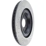 - Description: StopTech Drilled and Slotted Sport Rotors are 1-piece direct replacement brake discs for factory brake systems and stock calipers that look great behind your wheels – and offer significantly improved braking performance. The unique cross-drilling and slotting aids with heat and brake dust dispersal; prevents glazing of the pads; adds bite and improves wet and dry braking performance. Built to last; the black e-coating provides protection from corrosion and the high carbon metallurgy (in most applications) offers quieter operation; better crack resistance and increased performance.