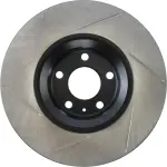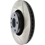 - Description: StopTech Slotted Sport Rotors are 1-piece direct replacement brake discs for factory brake systems and stock calipers that look great behind your wheels – and offer significantly improved braking performance. The unique slotting aids with heat and brake dust dispersal; prevents glazing of the pads; adds bite and improves wet and dry braking performance. Built to last; the black e-coating provides protection from corrosion and the high carbon metallurgy (in most applications) offers quieter operation; better crack resistance and increased performance.