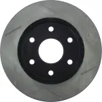 - Description: StopTech Slotted Sport Rotors are 1-piece direct replacement brake discs for factory brake systems and stock calipers that look great behind your wheels – and offer significantly improved braking performance. The unique slotting aids with heat and brake dust dispersal; prevents glazing of the pads; adds bite and improves wet and dry braking performance. Built to last; the black e-coating provides protection from corrosion and the high carbon metallurgy (in most applications) offers quieter operation; better crack resistance and increased performance.