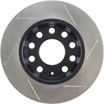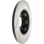 - Description: StopTech Slotted Sport Rotors are 1-piece direct replacement brake discs for factory brake systems and stock calipers that look great behind your wheels – and offer significantly improved braking performance. The unique slotting aids with heat and brake dust dispersal; prevents glazing of the pads; adds bite and improves wet and dry braking performance. Built to last; the black e-coating provides protection from corrosion and the high carbon metallurgy (in most applications) offers quieter operation; better crack resistance and increased performance.