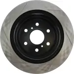 - Description: StopTech Slotted Sport Rotors are 1-piece direct replacement brake discs for factory brake systems and stock calipers that look great behind your wheels – and offer significantly improved braking performance. The unique slotting aids with heat and brake dust dispersal; prevents glazing of the pads; adds bite and improves wet and dry braking performance. Built to last; the black e-coating provides protection from corrosion and the high carbon metallurgy (in most applications) offers quieter operation; better crack resistance and increased performance.