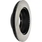 - Description: StopTech Slotted Sport Rotors are 1-piece direct replacement brake discs for factory brake systems and stock calipers that look great behind your wheels – and offer significantly improved braking performance. The unique slotting aids with heat and brake dust dispersal; prevents glazing of the pads; adds bite and improves wet and dry braking performance. Built to last; the black e-coating provides protection from corrosion and the high carbon metallurgy (in most applications) offers quieter operation; better crack resistance and increased performance.