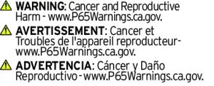 - Disclaimer: WARNING: Cancer and Reproductive Harm - www.P65Warnings.ca.gov